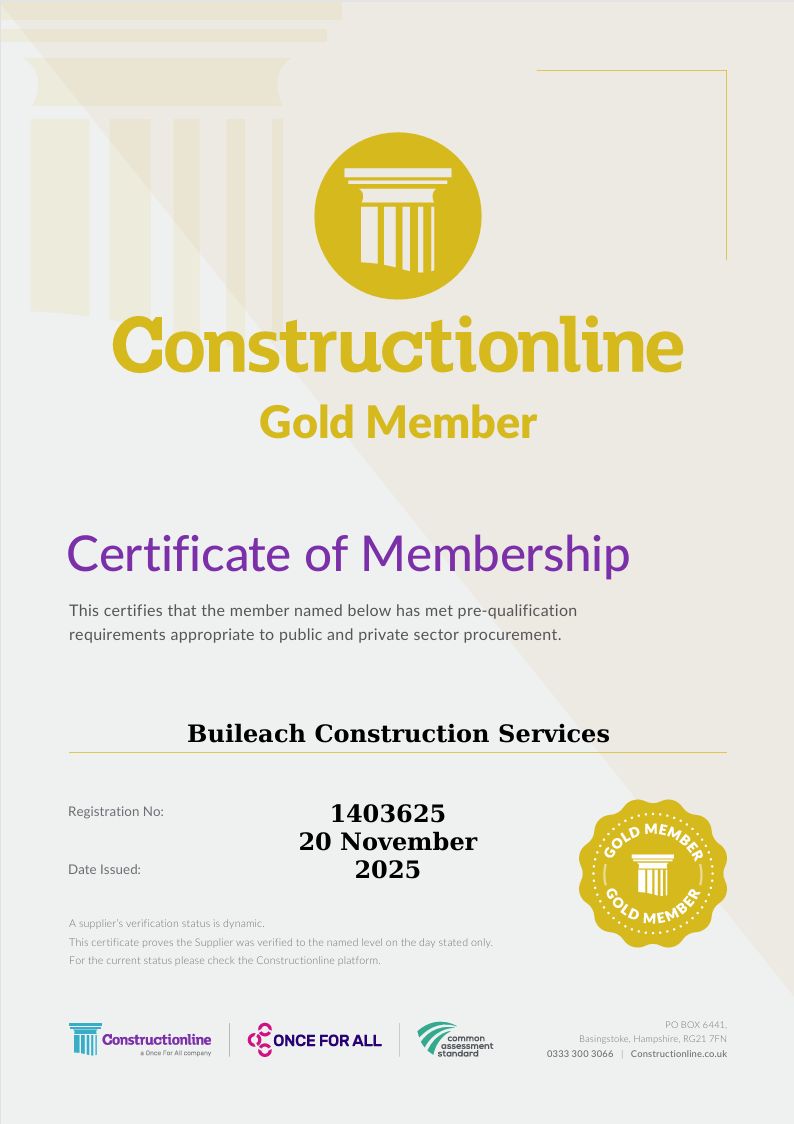 Huge well done to the team at Buileach Construction Services on achieving Constructionline Gold 👏